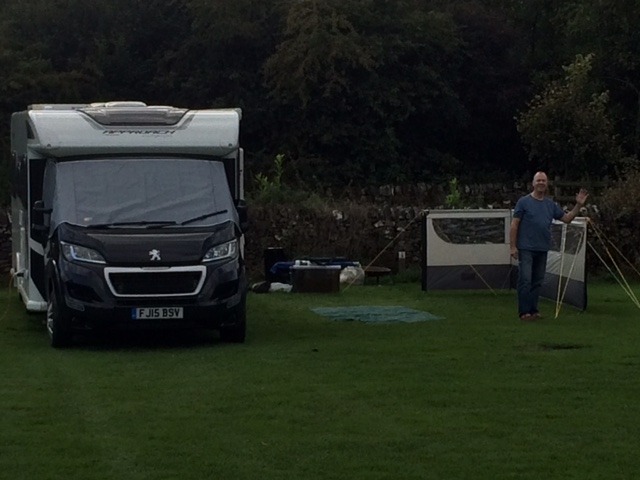 Months ago we arranged a weekend away with friends (Ali & Martyn Houslay) in September and a couple of weeks before we shortlisted a few campsites and sent this to them to choose. They selected a site called Knotlow Farm at Flagg nr Buxton Derbyshire which allowed us to take our own fire pit (after all camping even in a motorhome is all about the outdoors). Paul & I decided to head up a day before and opted to stay at a Britstops pub The Okeover Arms at Mapleton near Ashbourne. What a great decision this turned out to be. Although the lane leading to the pub was a little tight on the approach fortunately we didn’t meet anything coming from the other direction. The car park was roomy and the setting on the edge of the village very peaceful. We stayed on a Thursday and it was great to see a country pub so busy and popular. I can understand why though as the staff, food and atmosphere were all good and prices reasonable. We both ate and had a couple of drinks for £27! Great hospitality.
